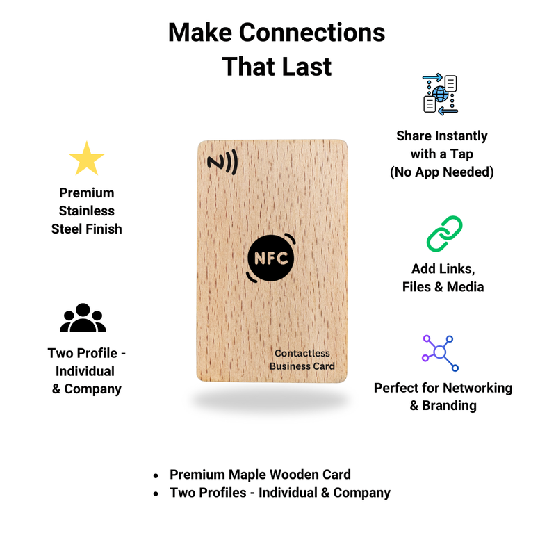 The SmartNFlex Beech Wood NFC Business Card blends craftsmanship with smart technology for a natural yet modern networking experience. Share your contact details, links, and media with just one tap — no paper, no app required. Powered by FlexPayz, it’s an elegant, eco-friendly, and secure way to connect, crafted from durable Beech Wood for a timeless, sustainable touch.