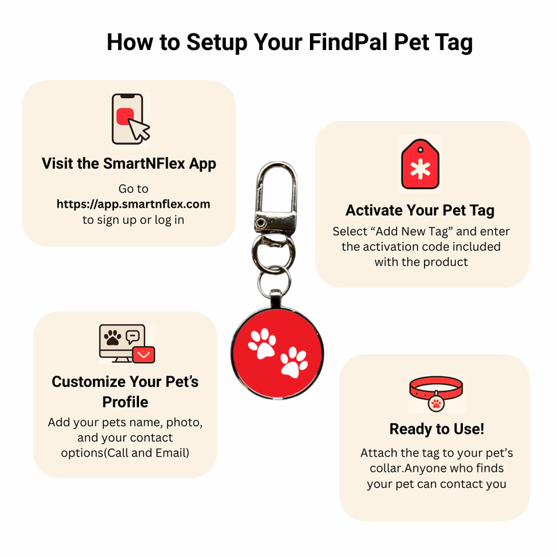 The Red FindPal NFC Pet Tag helps bring your pet home fast.